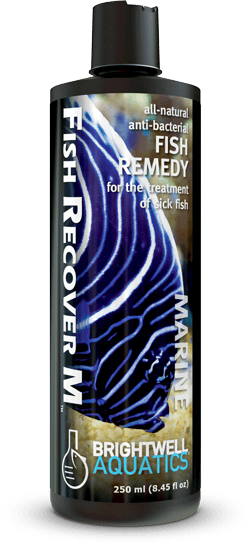 Prophylactic use: Add 1 capful 5 mL (1 capful on 500 ml bottle) of Fish Recover M for every 10 gallons of aquarium water for 3 days any time new fish are added to your aquarium. This prophylactic dose will aid the prevention of disease outbreaks.  If corals remain closed, then do a 25% water change.